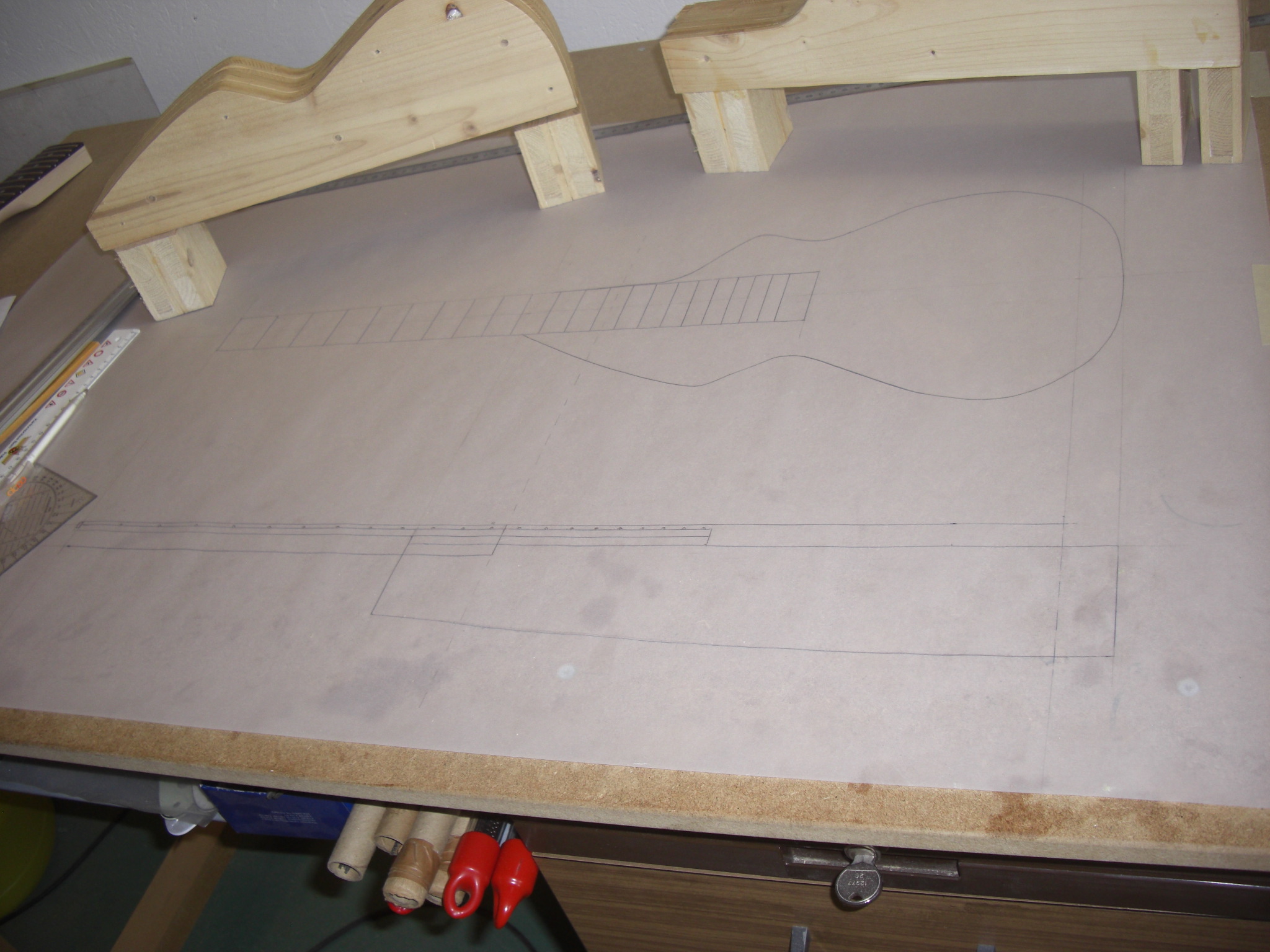 Seit einiger Zeit arbeite ich an einer klappbaren Reisegitarre, die in kürzester Zeit spielbereit ist und problemlos in jede Gepäckablage passt.